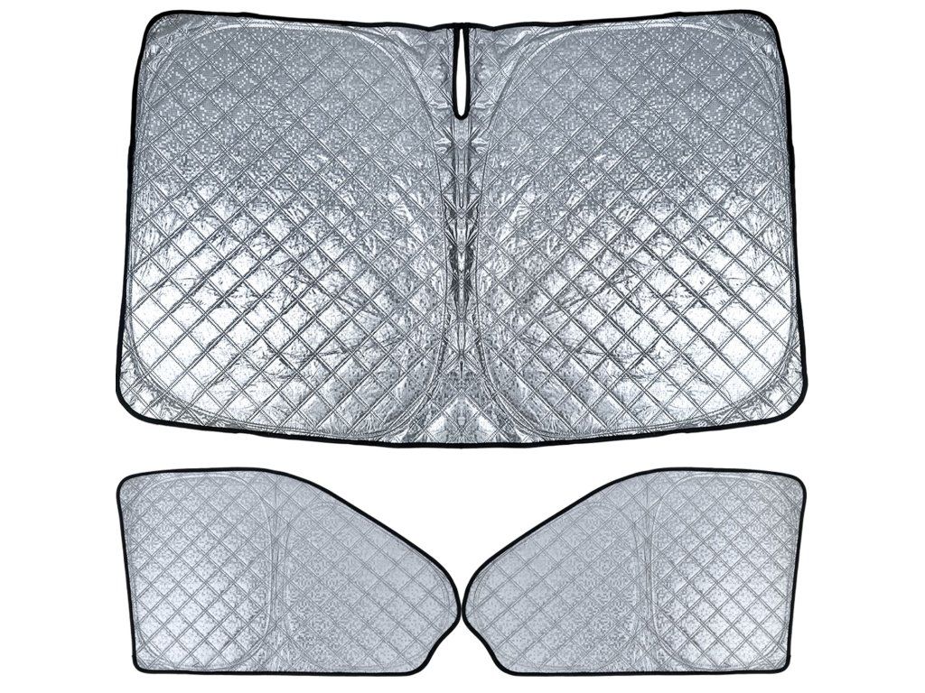 Tato třídílná prémiová sada slunečních clon je ideálním řešením pro horké dny a poskytuje účinnou ochranu předního a bočních předních oken vašeho vozidla. Díky neprůhlednému materiálu se stříbrnou tepelnou vrstvou spolehlivě chrání před sluncem i horkem.